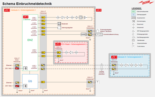 Blitz- und Überspannungsschutzmaßnahmen sind unverzichtbare Bestandteile eines ganzheitlichen Gebäudeschutzkonzepts. Sie verhindern irreparable Schäden und Funktionsstörungen an sicherheitsrelevanten elektrischen und elektronischen Systemen. Ob Energieversorgung oder Kommunikationsschnittstellen: DEHN bietet ein breites Portfolio optimal aufeinander abgestimmter Überspannungs-Ableiter zum Schutz der Gefahrenmeldetechnik. So bleibt Ihre Sicherheitstechnik auch bei Blitzereignissen zuverlässig und einsatzbereit.